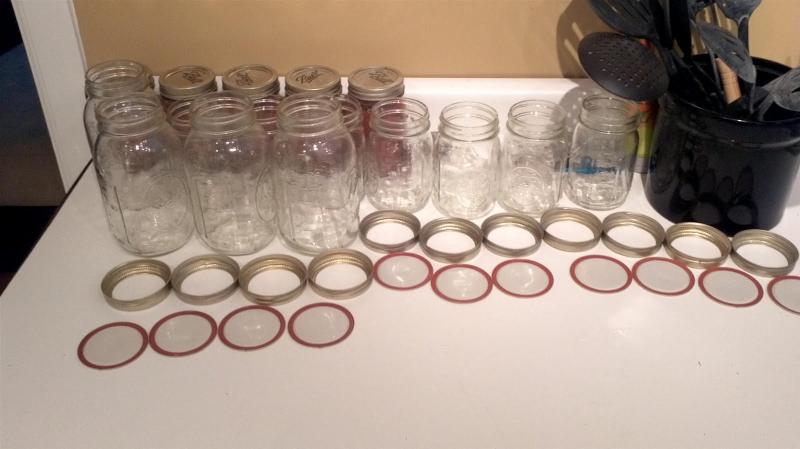Here's all the jars and lids, ready for the second batch.