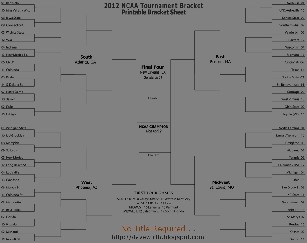 2012 NCAA College Basketball Bracket - All Formats